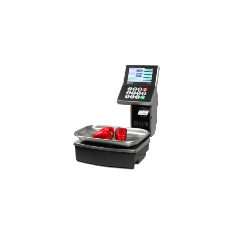 Piatto 375x315mm e corpo in acciaio inox, display LCD a colori retroilluminato su colonna, tastiera impermeabile a 12 tasti e stampante / etichettatrice termica. Bilance da Self Service per supermercato con display a colori 7" ad elevate prestazioni.